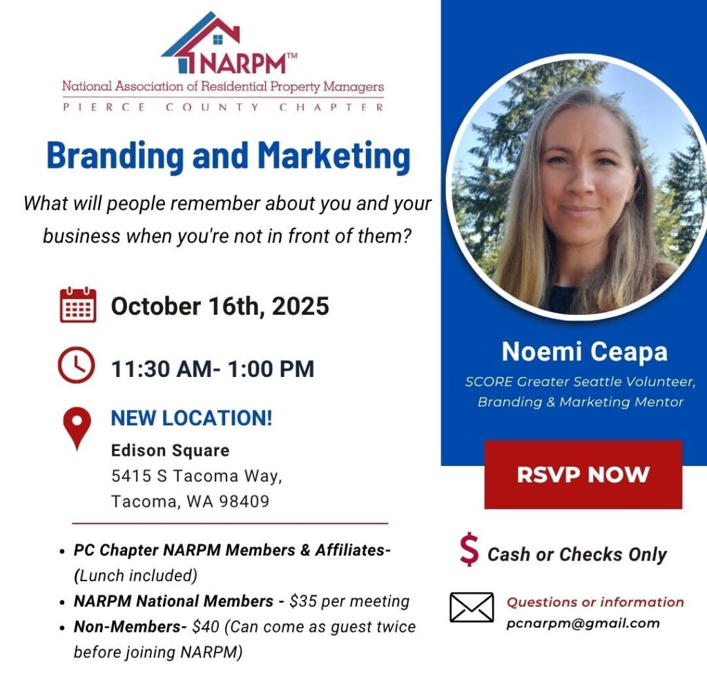 Oct 16th-Branding and Marketing – What will people remember about you and your business when you’re not in front of them?